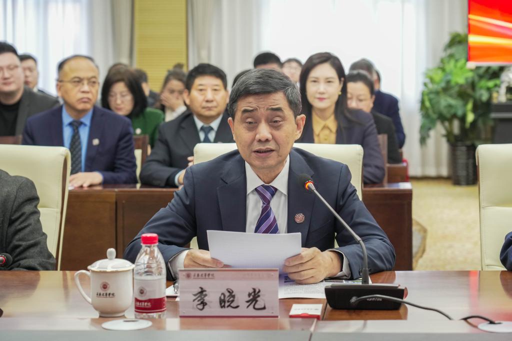 长春光华学院李晓光校长致辞,并介绍了与会的省教育厅领导及学校主要参会人员。李晓光校长对各位专家莅临学校开展现场评估指导表示热烈的欢迎和衷心的感谢,并对专家组在线上评估阶段的辛勤付出与专业指导致以崇高的敬意。他指出,本科教育教学审核评估是对学校办学实力、教学水平、人才培养质量和整体成效的一次全面检验,更是学校总结办学经验、凝练特色、深化改革、提升质量的宝贵机遇。自11月3日线上评估启动以来,专家们严谨务实的工作作风和深厚的专业素养令全校师生深表钦佩。他表示,专家入校考察是对线上评估的深化,对于帮助学校精准查找问题、明确改进方向具有重要意义。学校将倍加珍惜这次近距离学习请教的机会,以开放的态度、真实的状态全力配合专家组工作,虚心接受指导,期待专家们为学校高质量发展精准“把脉问诊”。全校师生将以此次评估为契机,踔厉奋发,笃行不怠,持续深化教育教学改革,不断提升人才培养质量,为教育强省、教育强国建设贡献光华力量。
