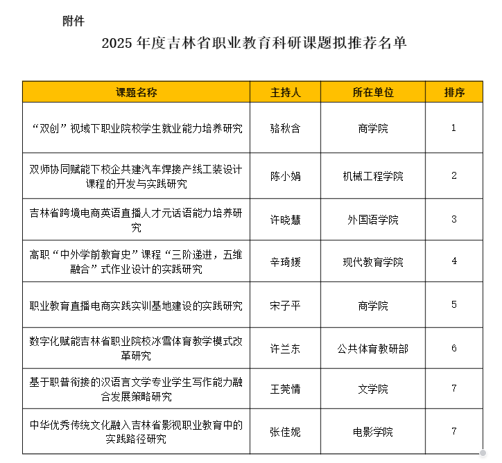 附件:2025年度吉林省职业教育科研课题拟推荐名单